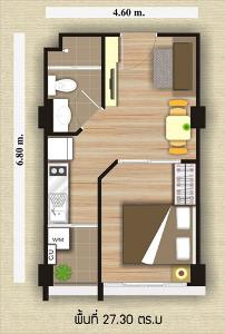-พื้นที่ใช้สอย: 27.28 ตร.ม.
