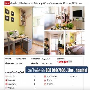 ขาย คอนโด Lumpini park : ลุมพินี พาร์ค เพชรเกษม 98 22 ตรม. ใกล้ mrt หลักสอง