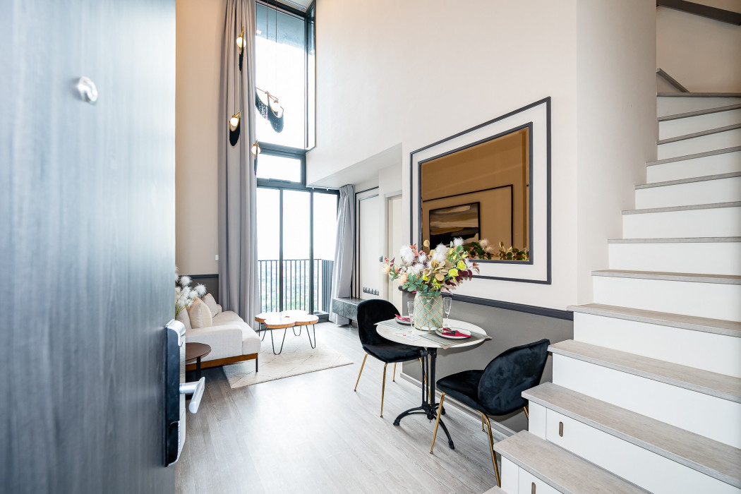 ให้เช่าห้องดูเพล็กซ์เพดานสูงห้อง The Line Sukhumvit 101 ตกแต่งครบ วิวสูง วิวเมือง