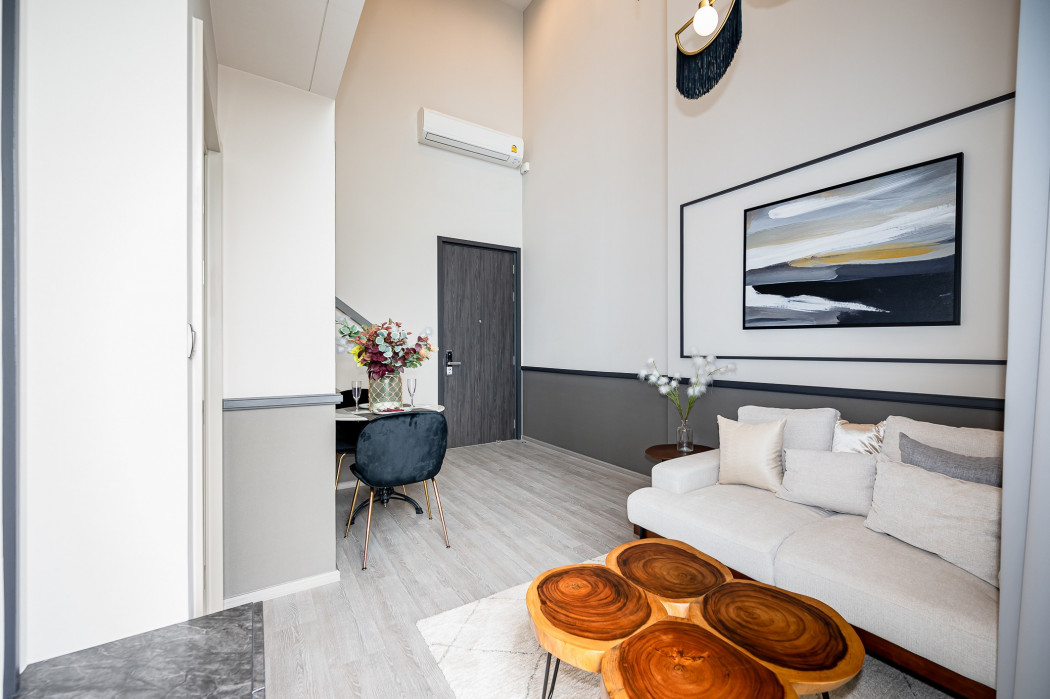 ว่างให้เช่า ห้องดูเพล็กซ์เพดานสูงห้องThe Line Sukhumvit 101 ตกแต่งครบ อยู่สบายไม่อึดอัด