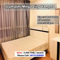 ให้เช่า ลุมพินี เมกะซิตี้ บางนา 1 ห้องนอน 1 ห้องน้ำ ราคา 7000 บาท BTS บางนา