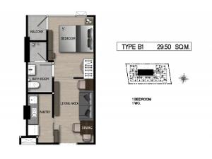 ขายดาวน์ The Unique 10 ชั้น 2 type B1 ห้อง 29.5 ตร.ม.