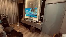 ให้เช่าห้องตกแต่งสวย ห้องนั่งเล่นเฟอร์และบิ้วอินครบ วิวสระว่ายน้ำ คอนโด Oka haus