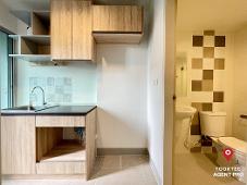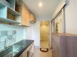 ขาย คอนโด ห้องสภาพดีมาก วิวเห็นสระว่ายน้ำเฟส3 นิช ไอดี พระราม2 30 ตรม. มีประตูบานเลื่อนระหว่างห้องนั่งเล่น ห้องครัว