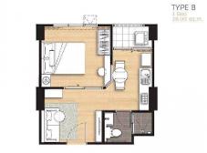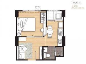 ขนาด : 28.67 ตรม. แบบ 1 ห้องนอน(กั้นห้อง) 1ห้องน้ำ