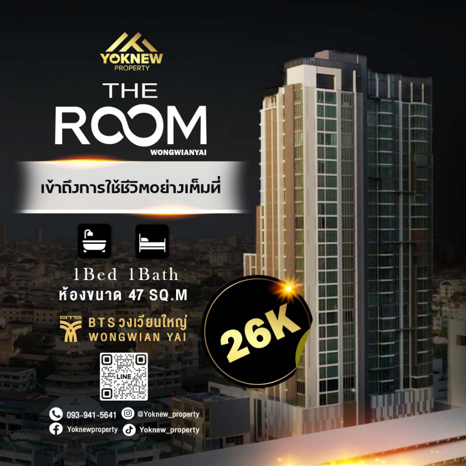 เช่าหรูสุดในย่าน ห้องนอนขนาดใหญ่ ตกแต่งสวยงาม พร้อมย้ายเข้าอยู่ The Room Wongwianyai