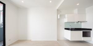 ว่างให้เช่า คอนโด Quinn Condo รัชดา 17 ห้องสีขาวตกแต่งด้วยเฟอร์ลอยตัว