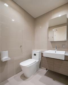 ว่างเช่า ห้องนอนขนาดใหญ่ คอนโด Quinn Ratchada 17 ห้องสีขาวตกแต่งด้วยเฟอร์มาครบ