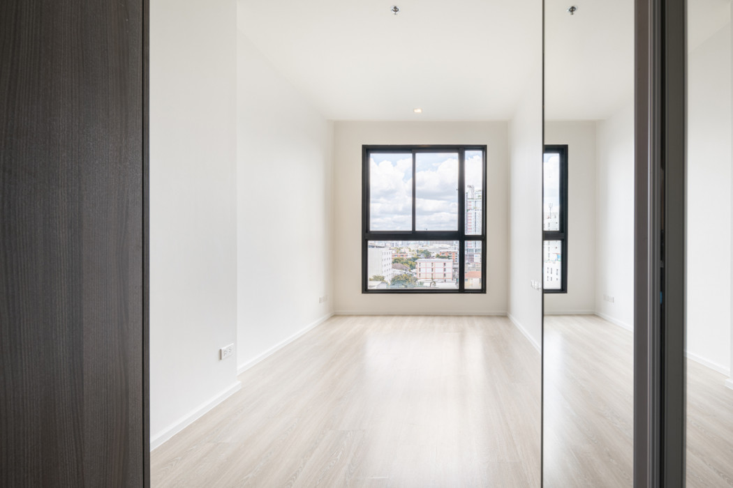 ว่างเช่าคอนโด Quinn Ratchada 17 ห้องนอนขนาดใหญ่ ห้องสีขาวตกแต่งด้วยเฟอร์มาครบ