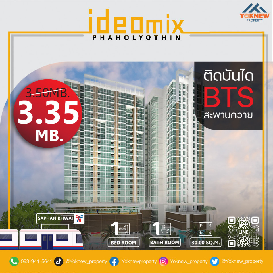 ขาย คอนโด 1 ห้องนอน IDEO MIX พหลโยธิน 31 ตรม. ติด BTS สะพานควาย ราคานี้ดีมาก