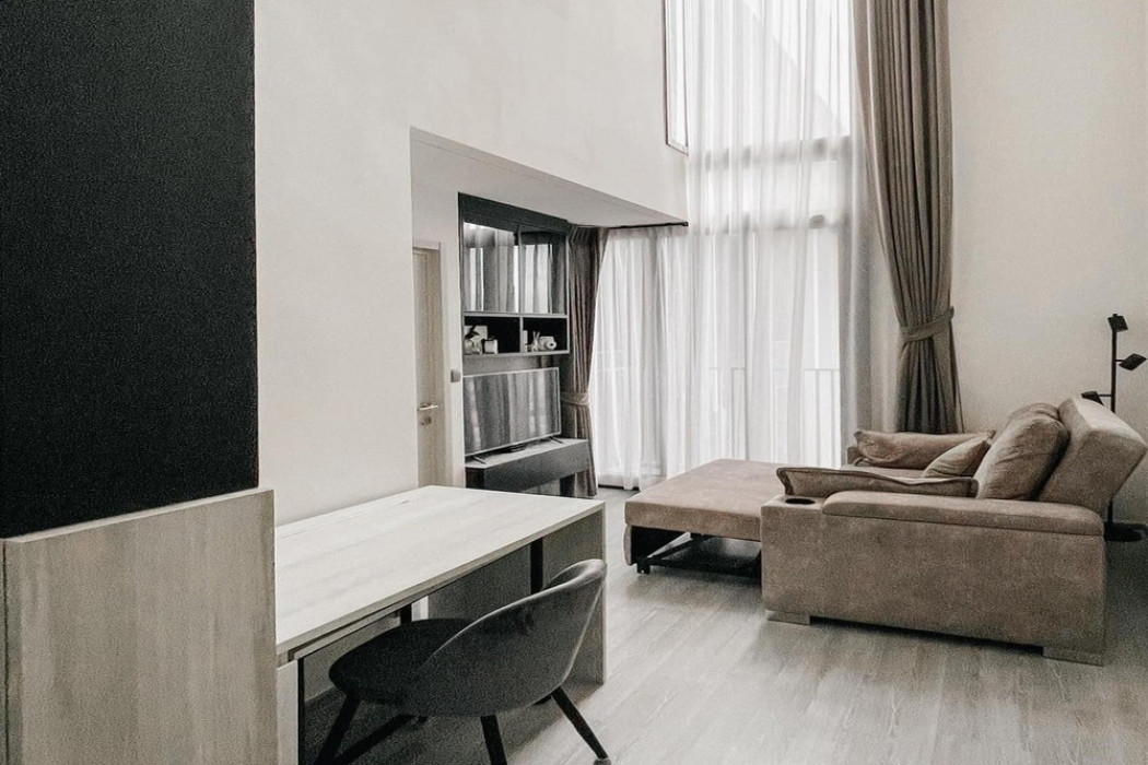 ว่างให้เช่า ห้องดูเพล็กซ์เพดานสูงห้องThe Line Sukhumvit 101 ตกแต่งครบ