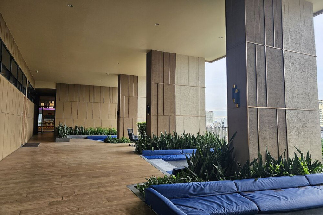ให้เช่าห้องตกแต่งสวย ห้องนั่งเล่นเฟอร์และบิ้วอินครบ วิวสระว่ายน้ำ คอนโด Oka haus