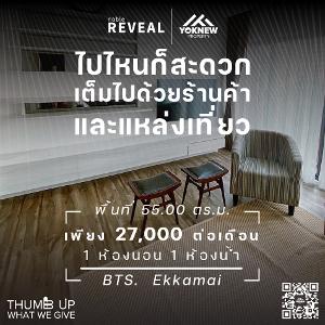 ขาย-เช่า ห้องตกแต่งสวย อบอุ่น พื้นที่ขนาด 55 ตร.ม. คอนโด Noble Reveal Ekkamai ใกล้รถไฟฟ้า BTS เอกมัย