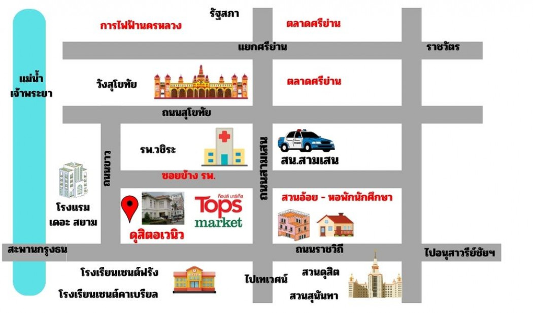 - Market Place ดุสิต : ตั้งอยู่ด้านหน้าโครงการ