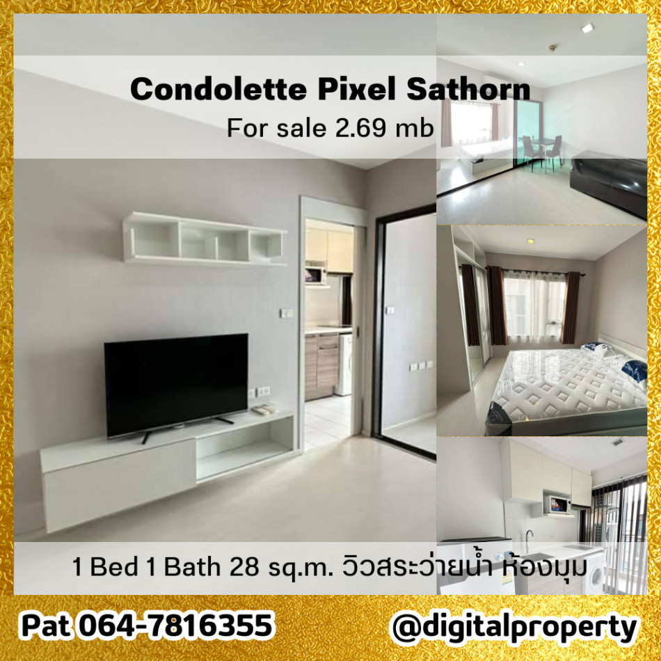 ขาย คอนโด 1 ห้องนอน เฟอร์ครบ ห้องมุม วิวสระว่ายน้ำ CONDOLETTE PIXEL สาธร 28 ตรม. ใกล้รถไฟฟ้า MRT คลองเตย