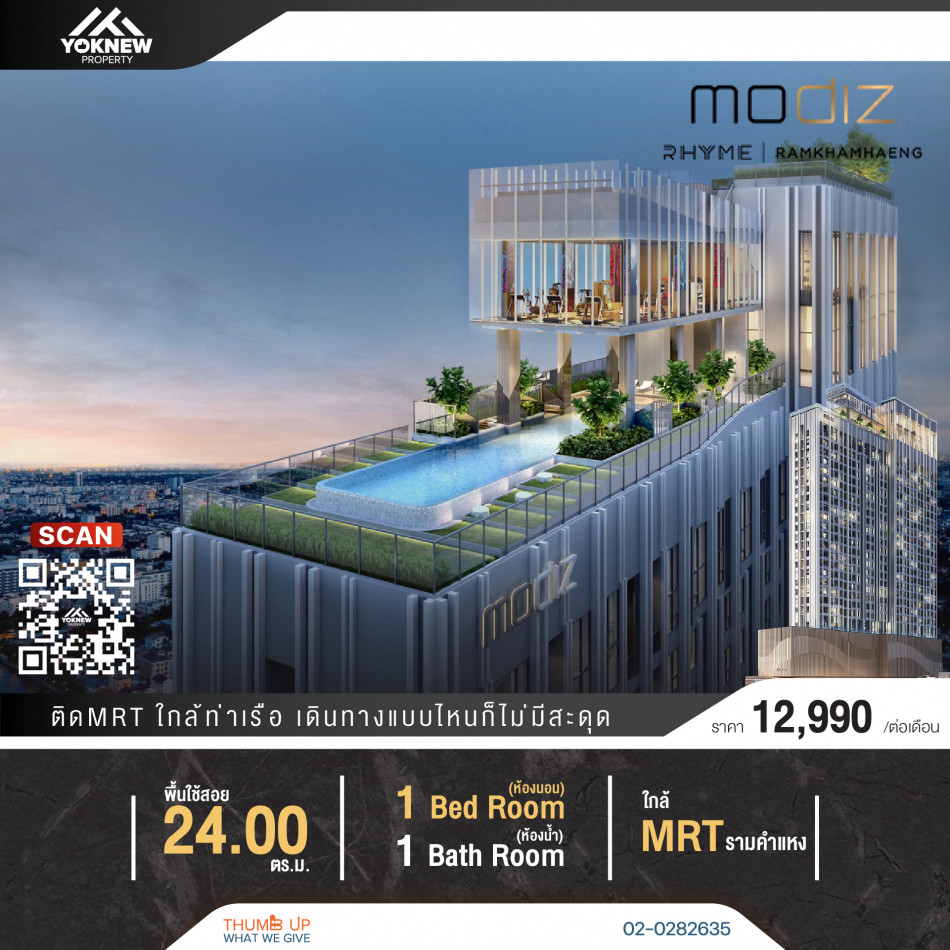 ขาย ห้อง 1 นอน 1 ห้องน้ำ คอนโด Modiz Rhyme Ramkhamhaeng ใกล้ MRT รามคำแหง