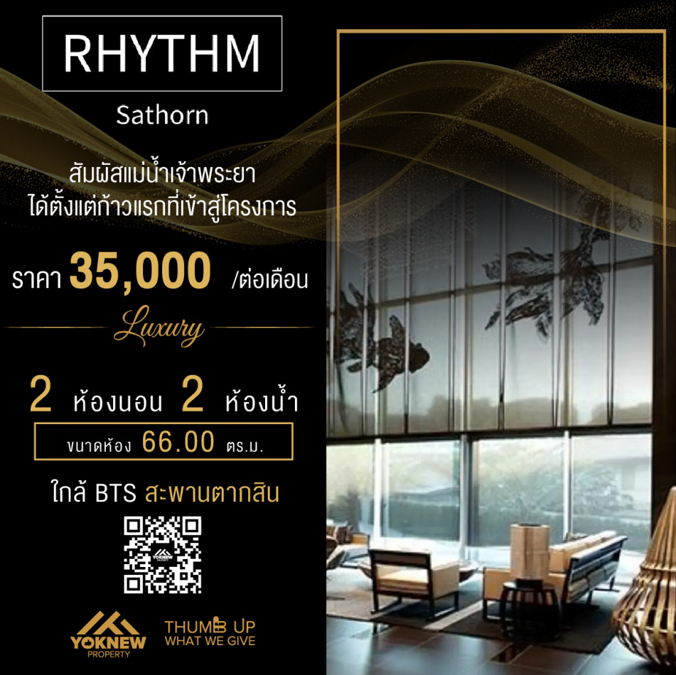 ว่างให้เช่า ห้องแต่งพร้อมอยู่ วิวโค้งแม่น้ำเจ้าพระยาคอนโด Rhythm Sathorn เดินทางสะดวก เพียง 250 เมตร ถึงรถไฟฟ้า BTS สะพานตากสิน