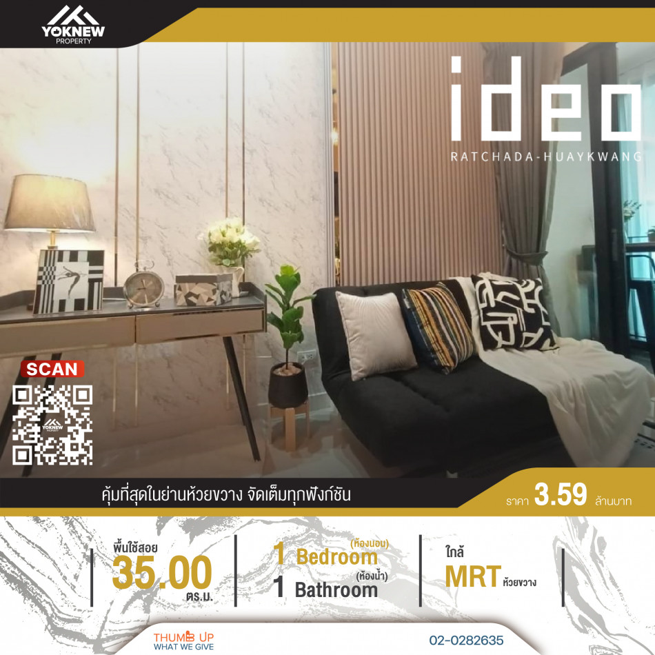 ขายคอนโด Ideo Ratchada – Huaykwang ห้อง Size 35 SQ.M เฟอร์ครบพร้อมเข้าอยู่