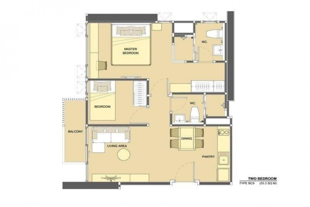 ขนาดพื้นที่ 55.0 ตารางเมตร