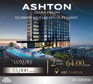เช่าคอนโด Ashton Chula – Silom 2ห้องนอน Size 64 SQ.M มุมกระจกโค้งสวยกระแทกตา ตกแต่งพร้อมอยู่