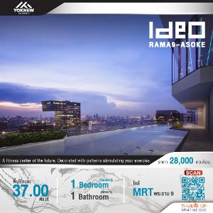พร้อมให้เช่า คอนโด Ideo Rama9–Asoke 1 BED 1 BATHห้องตกแต่งพร้อมย้ายเข้า Size 37 SQ.M