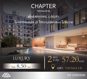 ขาย-เช่า2ห้องนอนใหญ่ ห้องใหม่ Chapter Thonglor 25 ราคาคุ้มมากๆในตอนนี้ ใกล้ BTS ทองหล่อ