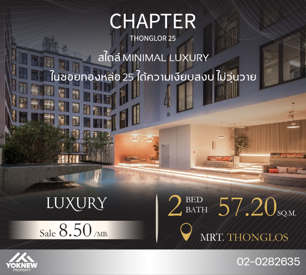 ขาย-เช่า2ห้องนอนใหญ่ ห้องใหม่ Chapter Thonglor 25 ราคาคุ้มมากๆในตอนนี้ ใกล้ BTS ทองหล่อ