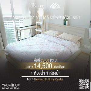 ให้เช่า คอนโด NOBLE REVOLVE รัชดา 26 ตรม. วิวโล่ง เฟอร์นิเจอร์ให้ครบ เดินทางสะดวก ใกล้ MRT ศูนย์วัฒนธรรม เพียง 300 เมตร..