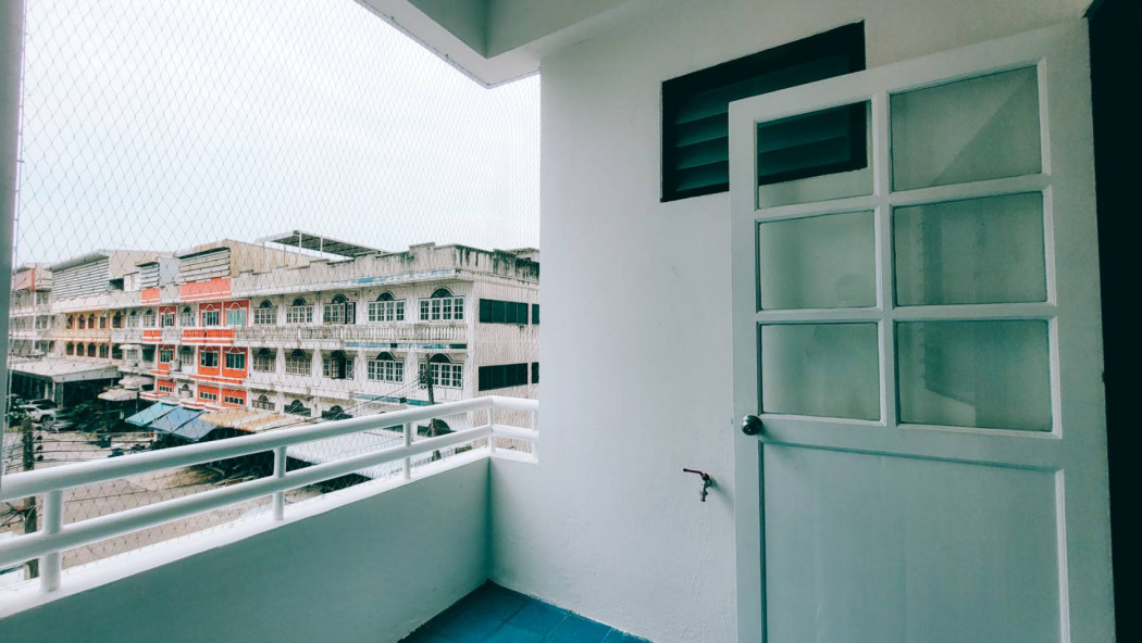 ระเบียงห้องหันออกทิศเหนือด้านหน้าตึก รับลมตลอดวัน