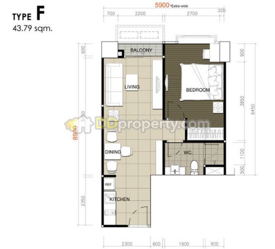 ขนาดพื้นที่ 43.0 ตารางเมตร