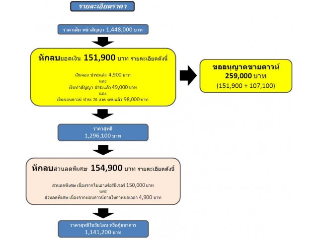 งวดโอนกรรมสิทธิ์ สุทธิ 1,141,200 บาท (หลังหักส่วนลด 150,000 และ ส่วนลดพิเศษ 4,900)
