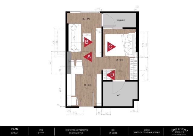 ขนาดห้อง 34.0 ตารางเมตร