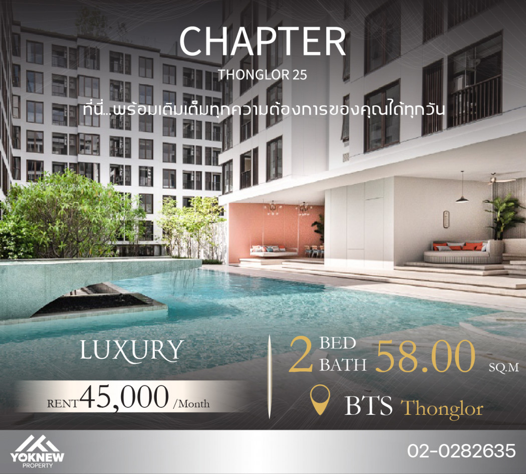 ให้เช่าคอนโดโครงการ แชปเตอร์ ทองหล่อ 25 Chapter thonglor 25 - 45000 ต่อเดือน ติดต่อคุณ ํYoknew Property