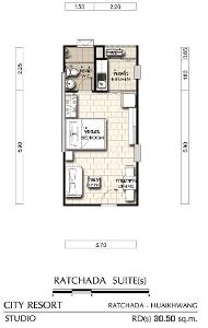 ให้เช่า คอนโด Supalai City Resort Ratchada-Huaykwang 30 ตรม. ครัวปิด