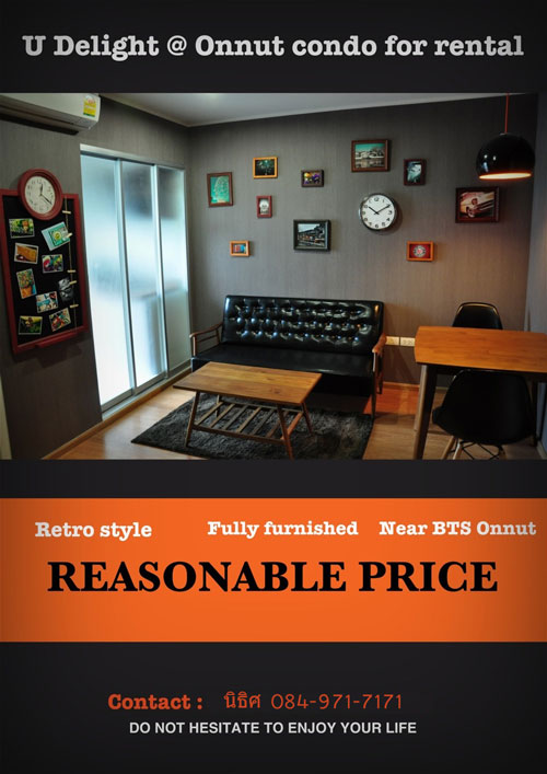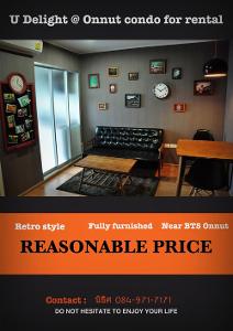 ให้เช่าคอนโด U Delight อ่อนนุช Retro style ใกล้ BTS แค่ 300 เมตร