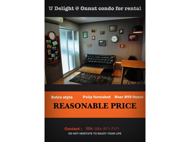 ให้เช่าU Delight On Nut 1Bed 31 ตรม. ชั้น22 13,500 Baht ใกล้ BigC