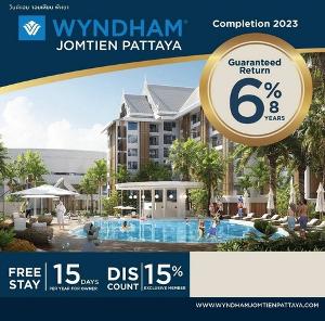 ขายห้องชุด WYNDHAM JOMTIEN PATTAYA ขนาดใหญ่ระดับ 5 ดาว เพื่อการลงทุน การันตีรายได้ 6% นานถึง 8 ปี มีห้องให้เลือก 3 ขนาด ใกล้หาดจอมเทียนพัทยา