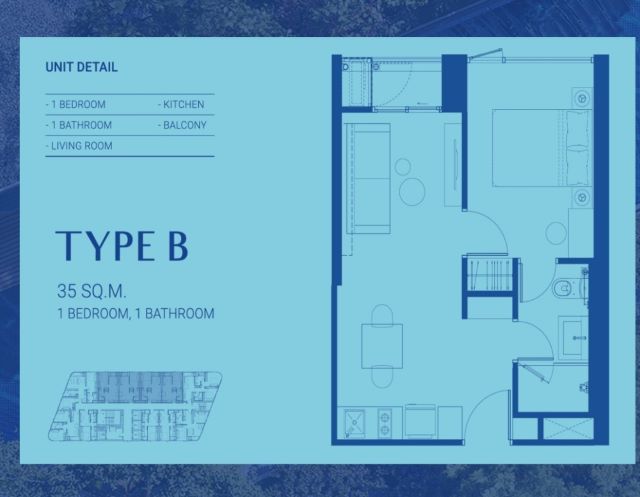 ขายด่วน 1 ห้องนอน 1 ห้องน้ำ คอนโดใกล้ MRT ห้วยขวาง คอนโด Amaranta Residence ห้องให้ความเป็นส่วนตัว ตำแหน่งห้องมุม