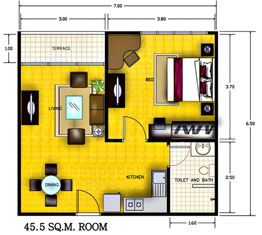ขนาดพื้นที่ 45.0 ตารางเมตร