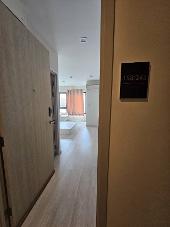 The bedroom is a studio type with 8 cm thick laminate flooring. The height from the floor to the ceiling is approximately 2.5 meters.