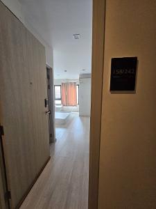 ห้องนอนเป็นแบบ studio ใช้วัสดุปูพื้นด้วยพื้นลามิเนตหนา 8 cm. ระยะความสูงจากพื้นถึงฝ้าประมาณ 2.5 เมตร