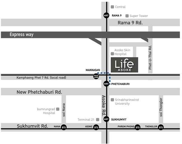 ให้เช่า คอนโด ห่างจาก MRT เพชรบุรี 200 เมตร Life Asoke : ไลฟ์ อโศก 30 ตรม.