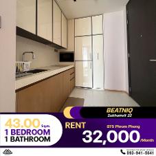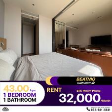 ว่างให้เช่าคอนโด Beatniq Sukhumvit 32 ห้องนอนออกแบบมาได้ดี ขนาด 43 ตร.ม.