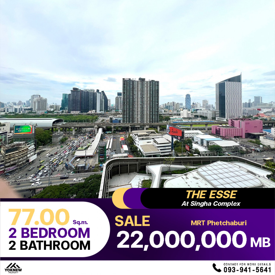 ขายด่วน2 ห้องนอน 2 ห้องน้ำ คอนโด The Esse at Singha Complex เดินทางง่าย ติด MRT เพชรบุรี