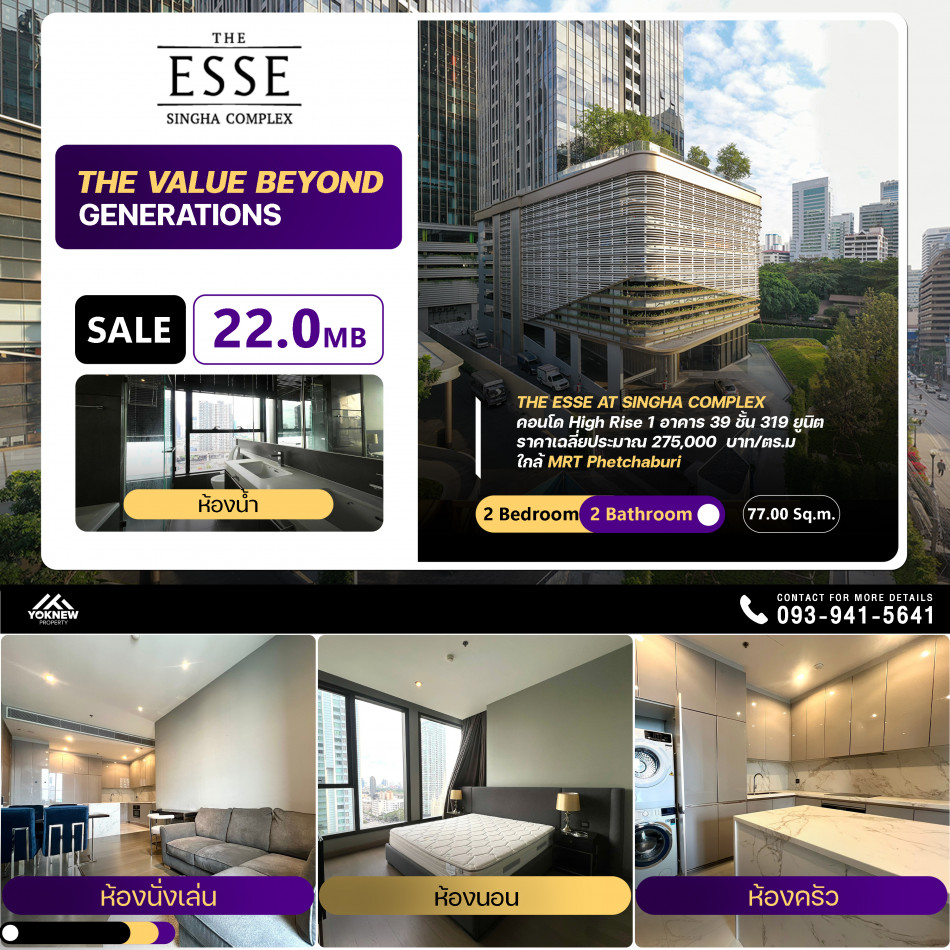 ขายด่วน 2 ห้องนอน 2 ห้องน้ำ คอนโด The Esse at Singha Complex สัมผัสบรรยากาศที่คุณจะหลงรัก