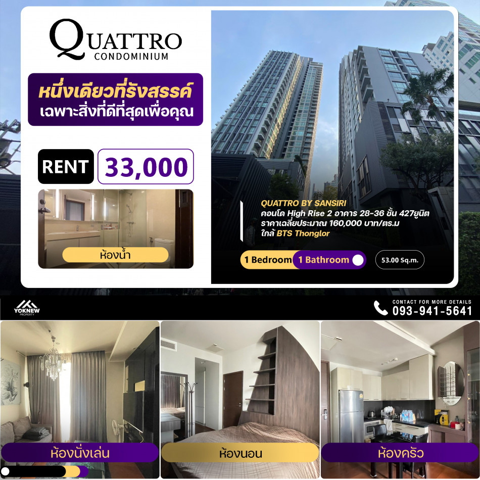 ให้เช่า QUATTRO BY SANSIRI BTS ทองหล่อ1 ห้องนอน 54 ตรม BTS ทองหล่อ