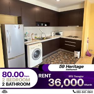 เช่าราคาพิเศษ 2 ห้องนอน 2 ห้องน้ำ คอนโด 59 Heritage Sukhumvitใกล้ BTS ทองหล่อ