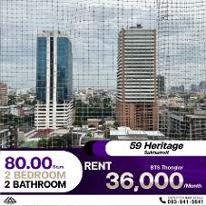 คอนโด 59 Heritage Sukhumvit ห้อง.ใหญ่เฟอร์นิเจอร์ครบชุด 2 ห้องนอน 2 ห้องน้ำ เช่าราคา 53,000 บาท