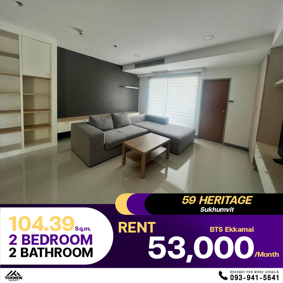 เช่าราคาพิเศษ คอนโด 59 Heritage Sukhumvit 2 ห้องนอน 2 ห้องน้ำ ห้องใหญ่ชั้นสูง วิวโล่ง