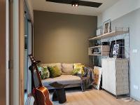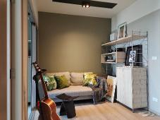- ตกแต่งแบบ Cosy Living โทนสี Beige, Olive Green และ Deep Green ตัดกับไม้ Ash Wood (วัสดุเมลามีนและลามิเนต)